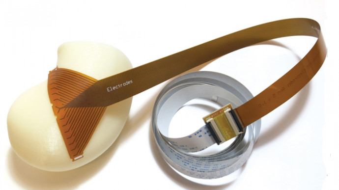 Our first goal was to measure the gut in its natural state. To achieve this, we adapted the printed circuit technology which allows compact sensors/electrodes to be embedded on a flexible substrate (Figure 1). What we produced was a flexible grid of hundreds of electrodes that allowed us to obtain a topographical map of how the bioelectrical activity is transmitted in the gut – we call this process high-resolution mapping.