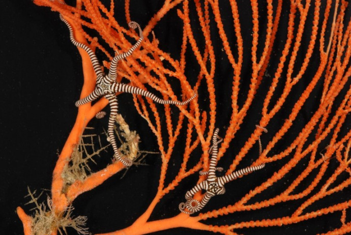 Snake star and primnoid coral