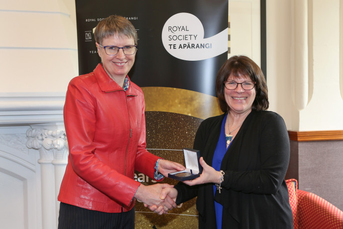 As Professor Brooker was unable to attend this year's New Zealand Research Honours, Professor Richard Blaikie FRSNZ, Royal Society Te Apārangi Vice-President, organised a small ceremony at the University of Otago where she was presented the award by Vice-Chancellor Professor Harlene Hayne FRSNZ.