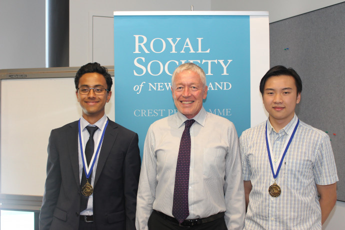 Chun Kiet and Siddha were presented their Gold CREST medals by Professor Richard Bedford, President, Royal Society of New Zealand.