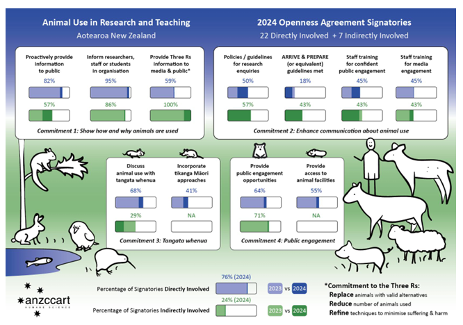 ANZCCART NZ invites other institutions and organisations in New Zealand to join the Openness Agreement and contribute to the nation's continued leadership in animal welfare and scientific research. Organisations interested in becoming signatories can contact anzccart@royalsociety.org.nz for more information.