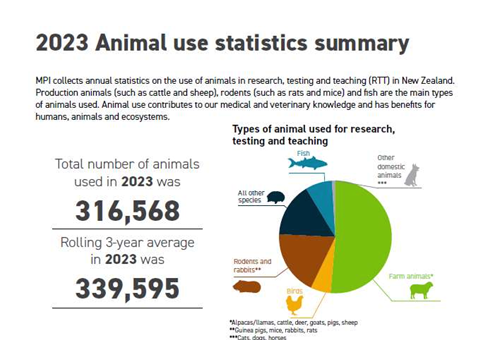 New Zealand’s Ministry for Primary Industries (MPI) released the 2023 statistics about the use of animals in research, testing and teaching in early January 2025.
