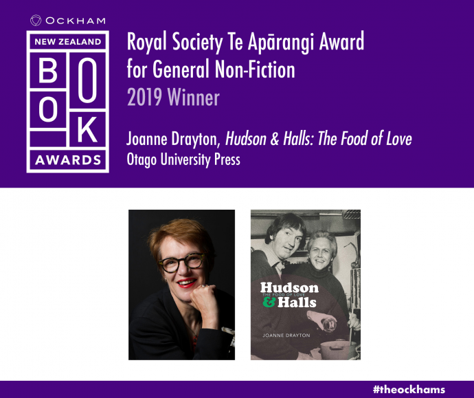 New York Times best-selling author and academic Joanne Drayton won the Royal Society Te Apārangi Award for General Non-Fiction at the 2019 Ockham New Zealand Book Awards for her book on celebrity chef duo Hudson & Halls.
