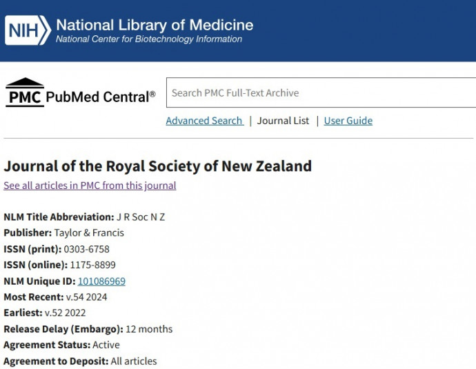 Published 30 October 2024Journal of the Royal Society of New Zealand (JRSNZ) achieves major milestone with indexing in PubMed Central®