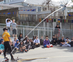 Royal Society Te Apārangi Research Assessor Heidi de Ronde seized the opportunity to become a STEM ambassador for the Rocket Challenge that supports students to design, build and launch water rockets. She paired up with Thorndon School, conveniently located across the street, which had been enrolled by deputy principle Matt Boucher, a Science Teaching Leadership Programme graduate.