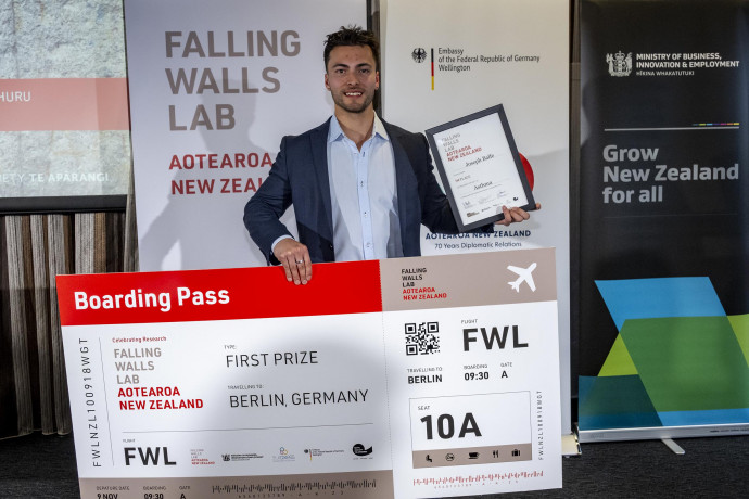 In awarding him first place in Falling Walls Lab Aotearoa New Zealand, Jury Chair Professor Phil Lester said the wearable asthma treatment device had the potential to be a “major advance” and was “very globally relevant” given the high prevalence of asthma globally. He also complimented Joseph for his “polished, evidence-based presentation”.
