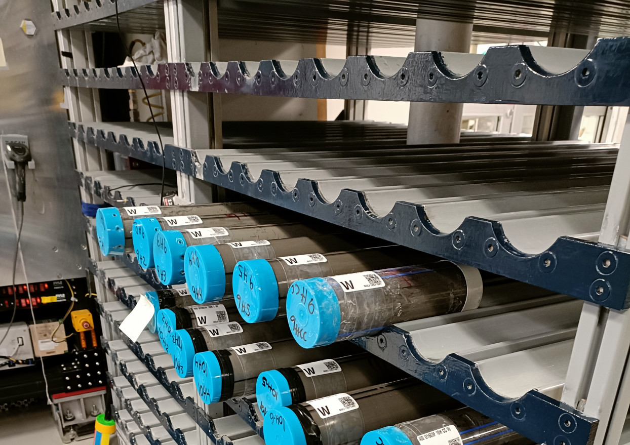 Racks of cores ready for processing by the science party in the ship's core laboratory (photo: supplied)