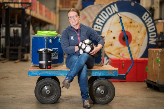 Natalie with one of NIWA's new current meters, purchased for Natalie's Marsden-funded research (Dave Allen, NIWA)