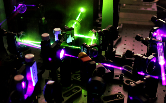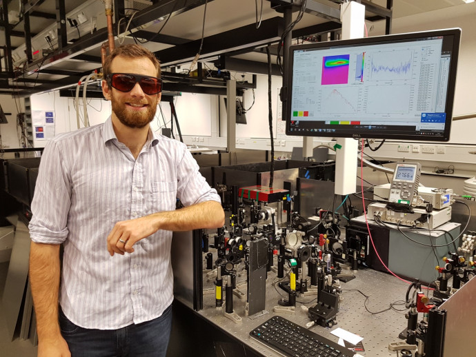 The laser setup Dr Price uses to study the fundamental optical dynamics of organic compounds like Y6