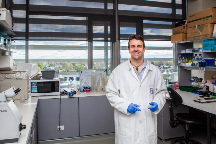 The aim of Dr Nock’s Rutherford Discovery Fellowship is to establish the antifungal properties of new compounds, plants and other species for the development of novel treatments. To do so, Dr Nock will use his nanobiotechnology expertise, developing lab-on-a-chip devices to further understand how fungi and oomycetes find targets and physically invade them. The devices will include arrays of electrodes to determine how spores locate tree roots, and whether roots can be protected using external electric fields. They will also include force-sensing micropillars to help determine the internal mechanisms by which the fungi and oomycetes generate the mechanical forces they use to penetrate their targets. If the factors that underlie all these mechanisms can be determined, this may impact how we address the many diseases and infections that occur due to pathogenic fungi and oomycetes.