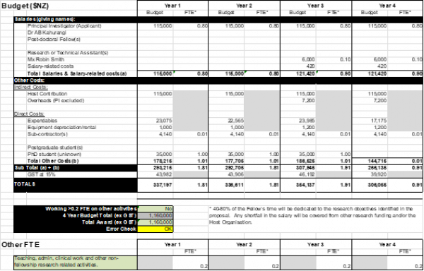 These amounts will be pro-rated depending on the agreed FTE basis of the Fellowship. By exception, with agreement of the applicant, the host and Royal Society Te Apārangi, the contributions above may be shifted between the different components (see Budget).