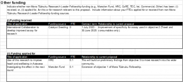 - A Mana Tūānuku Research Leader Fellowship applicant may not apply for another Tāwhia te Mana Research Fellowship in the same funding round.