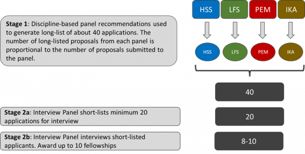 Stage one is the assessment of all proposals by a discipline-based panel. Applicants can select which of the four panels they wish to assess their proposal: