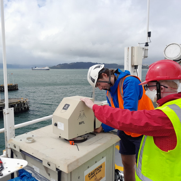Cloud monitoring equipment from the Research Vessel Tangaroa in 2023 (Supplied)