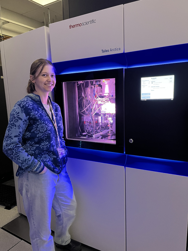 Dr Alice-Roza Eruera with an electron microscope. Supplied.