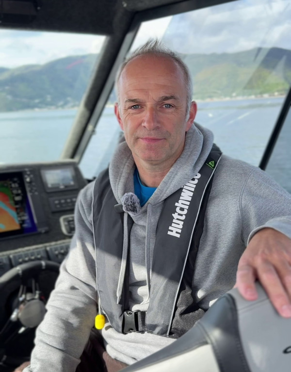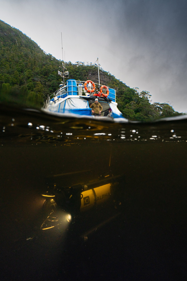 Professor Bell on the back of the MV Pembroke in Fiordland waiting for the Remotely Operated Vehicle “George” to return to the surface. Credit: Matteo Collina.