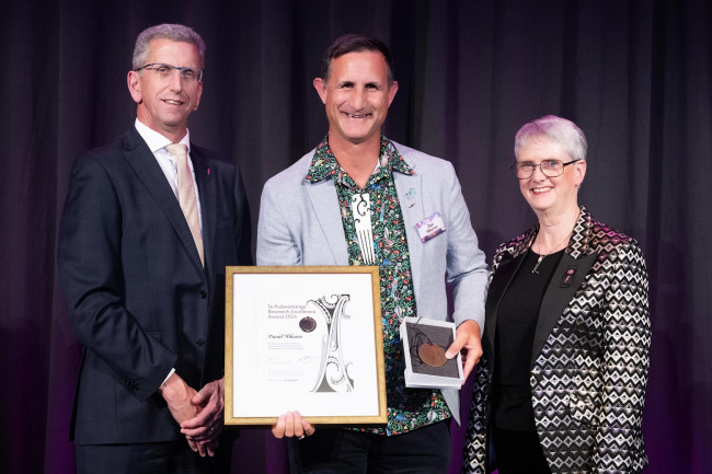 In awarding this Research Excellence Award, Te Puāwaitanga, the selection committee recognised Dan’s “tireless efforts serving Māori communities, exploring mātauranga and illuminating its ways of knowing for scientists”.