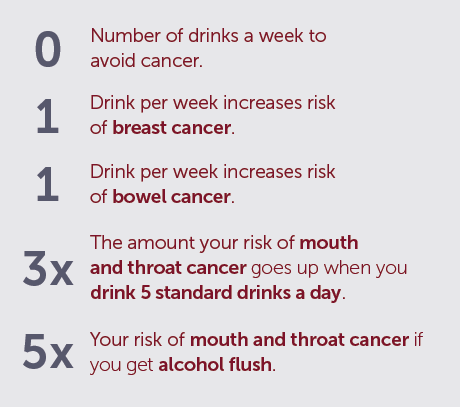 Drinking alcohol doesn’t mean that you’ll definitely get cancer, but the risk is higher the more alcohol we drink.
