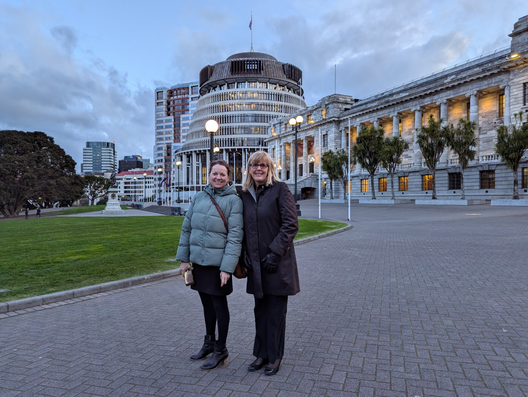 Dr Kelly Burrowes and Dr Jan Powell outside Parliament
