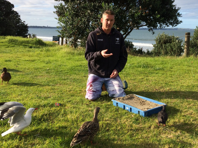 He was also involved in fieldwork researching the possible effects on bird life for the Mangawhai Harbour restoration project. This involved many areas of data collection around avian diversity and used fixed width transect bird counts and foot print surveys at salt marsh and mangrove habitats. A habitat quality (food) survey was also conducted where at each focal site, 10 samples of benthic invertebrate community were collected using 2 sampling cores. Data on diversity and abundances of potential food items of the banded rail bird was then compared between different habitat types. This information will play an important role in deciding to what extent mangrove forests can be removed from the Mangawhai Harbour.