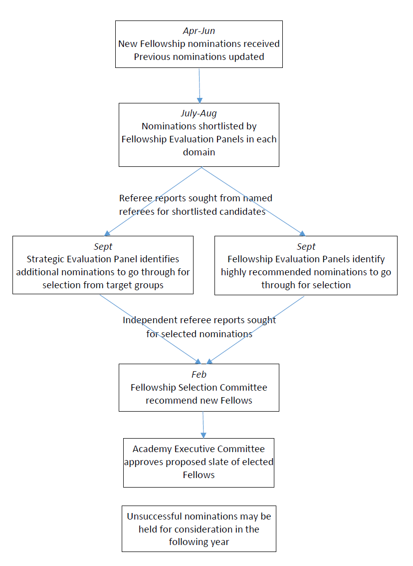 Fellows and Honorary Fellows are elected to our Academy annually. Nominations are made by other Fellows or senior office-holders of our Member Organisations and each nomination can remain active for five years. Each year nominations are short-listed by evaluation panels and then selected for election by the Fellowship Selection Committee.